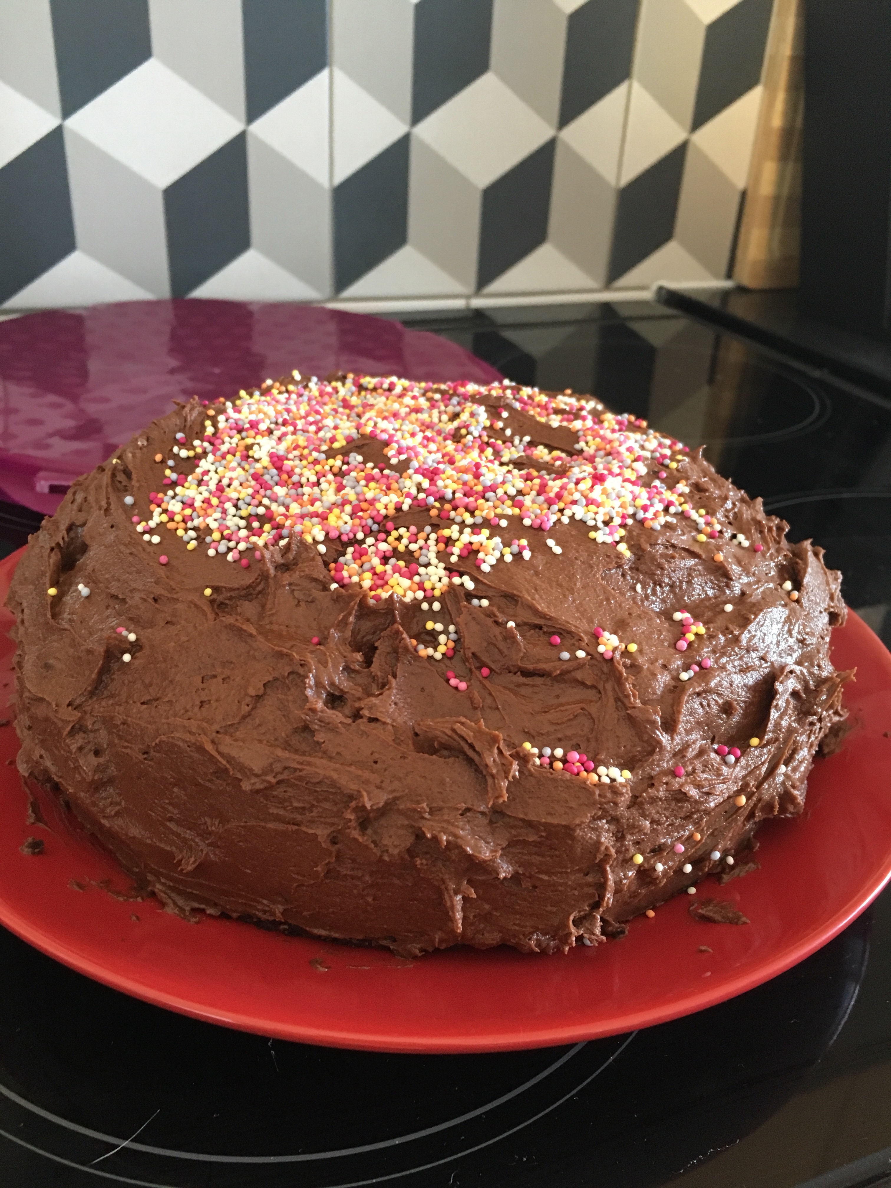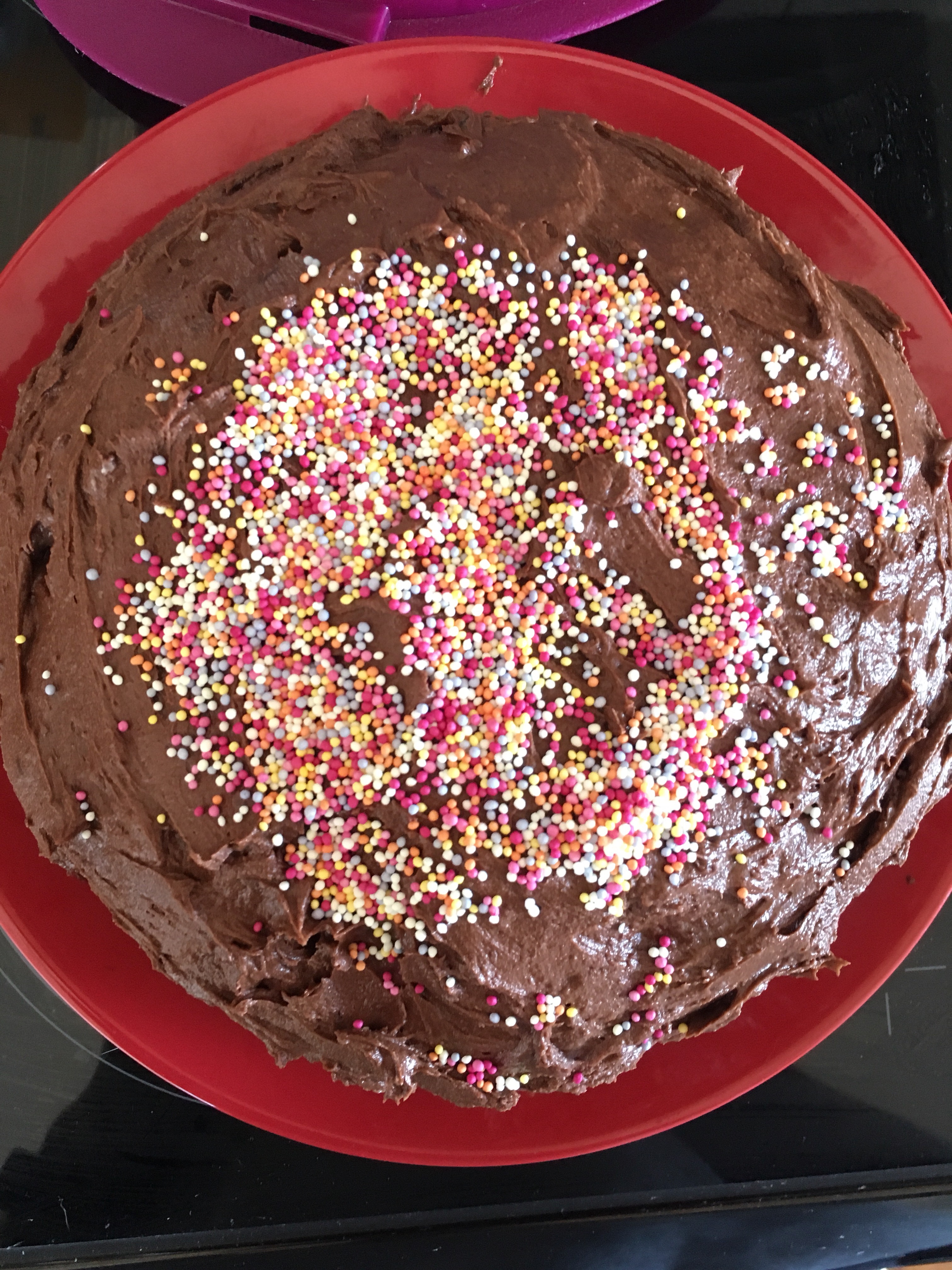 The chocolate cake I made was for my nephews 2nd birthday. Coincidently me and my sister made cakes that looked identical (although hers wasn’t vegan). Both covered in chocolate frosting and colourful sprinkles. Granted her icing and sprinkles was neater but it was freaky!